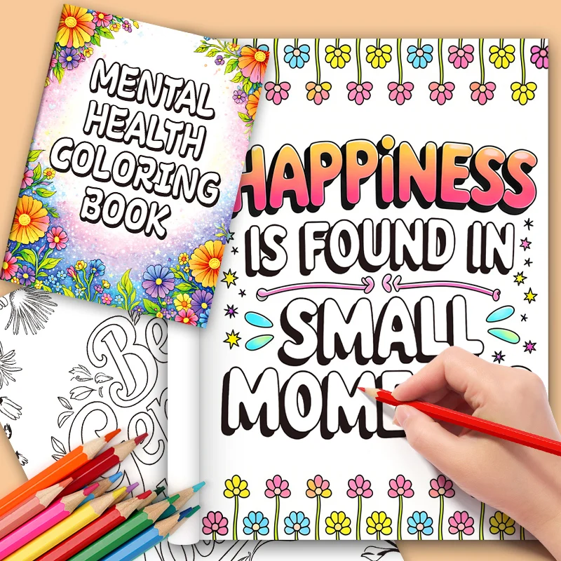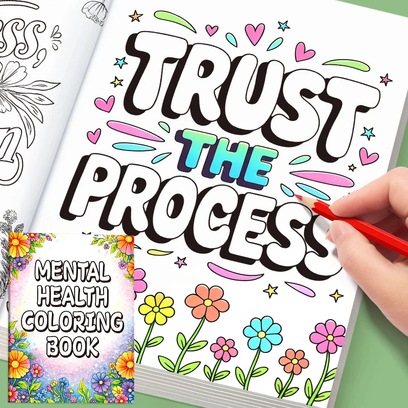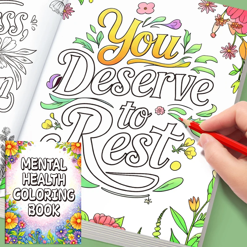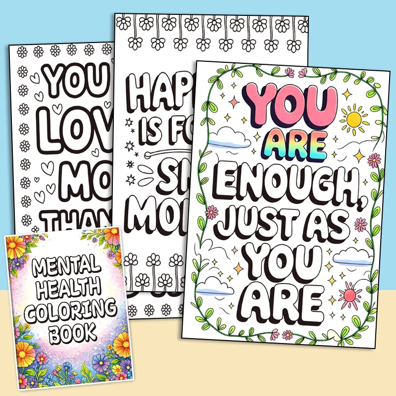 Adult Coloring Book 32 Pages Mental Health Wellness Creative Relaxing Anti-Anxiety Art Therapy Gift